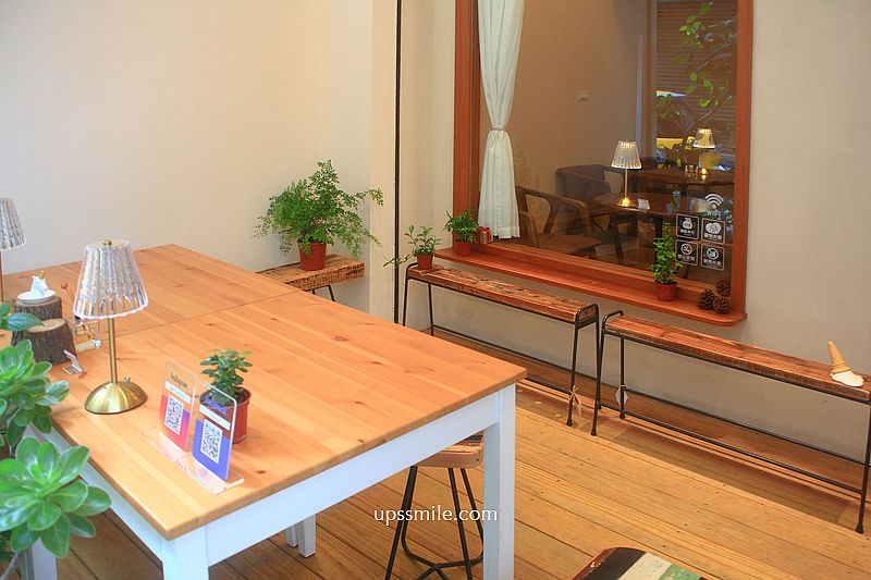 挑高空間,木質地板,韓系咖啡廳裝潢,木質裝潢配上歐風擺設,每一處都很精心佈置,這裡也是寵物友善咖啡廳,提供三張雙人木質座位。