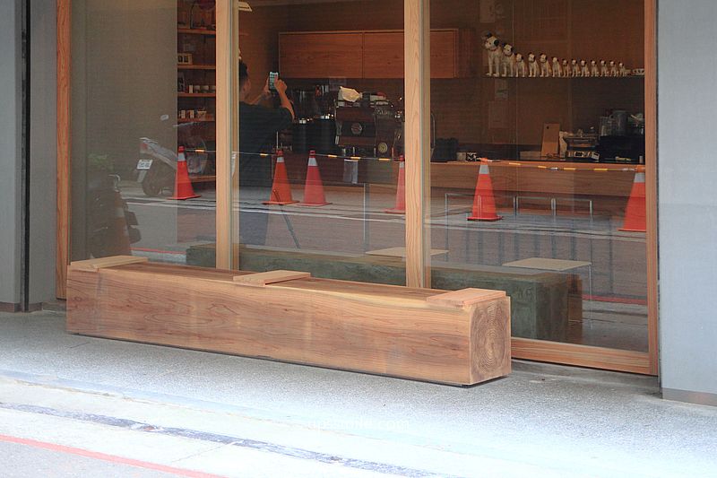 入店內客滿,可乘坐戶外木質座位,等候區,喝一杯咖啡。