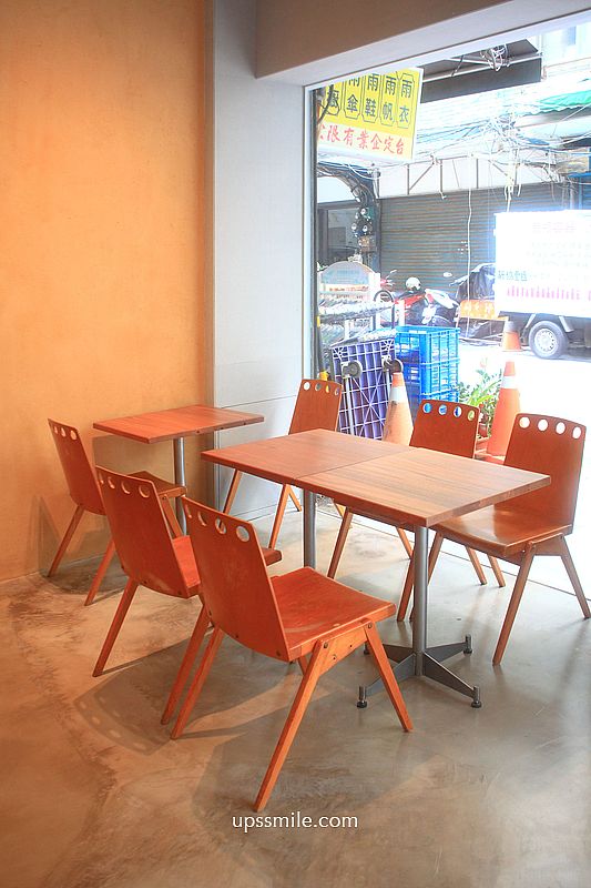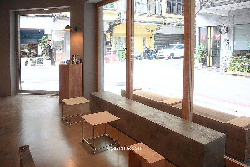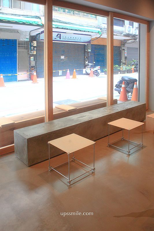 映入眼簾,空間不大,水泥粉刷地板,室內以實木桌椅與不銹鋼元素,冰冷交織溫暖色系,室內約一張雙人座位、一張四人座位,以及水泥灰長椅三人座位,吧台前方四人高腳椅座位區,整間店就客滿了。