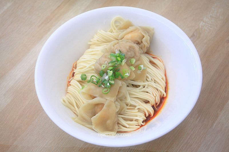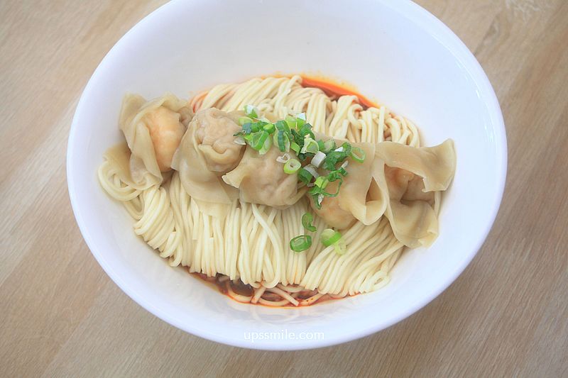 紅油鮮蝦抄手麵細麵120元,若不講,一看這擺盤就像是在鼎泰豐吃麵食氛圍,很有梗,下方擺放麵,上頭是鮮蝦抄手,一份5顆鮮蝦抄手,整齊美觀,食指大動。