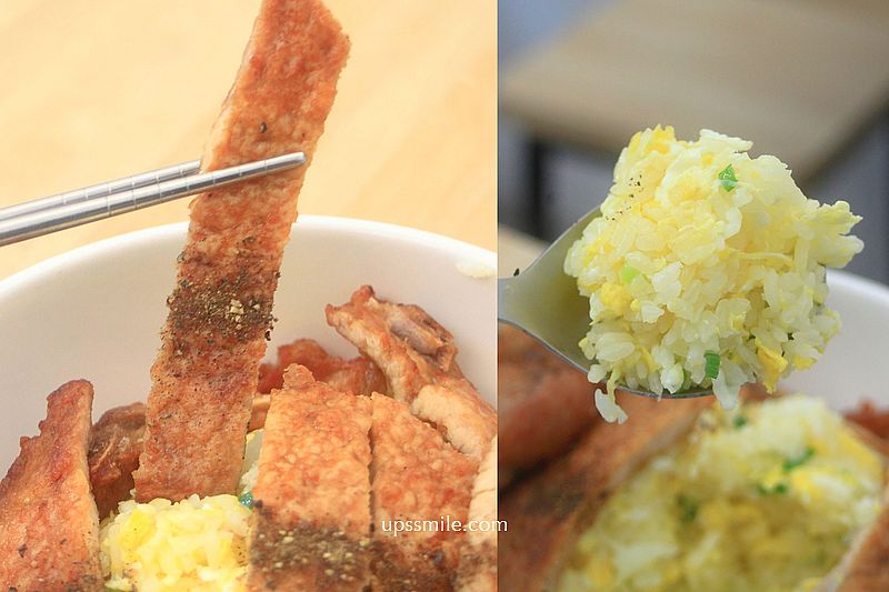 一整片醃漬過的排骨,排骨現炸的,炸過後,酥脆好吃,排骨不乾柴,米飯冰過,再來煮與炒飯,造就這好吃關鍵,米飯粒粒分明,炒飯滿滿米香,不油膩,蛋香跟蔥味整個有炒出來,米飯乾爽分明,實在好吃。
