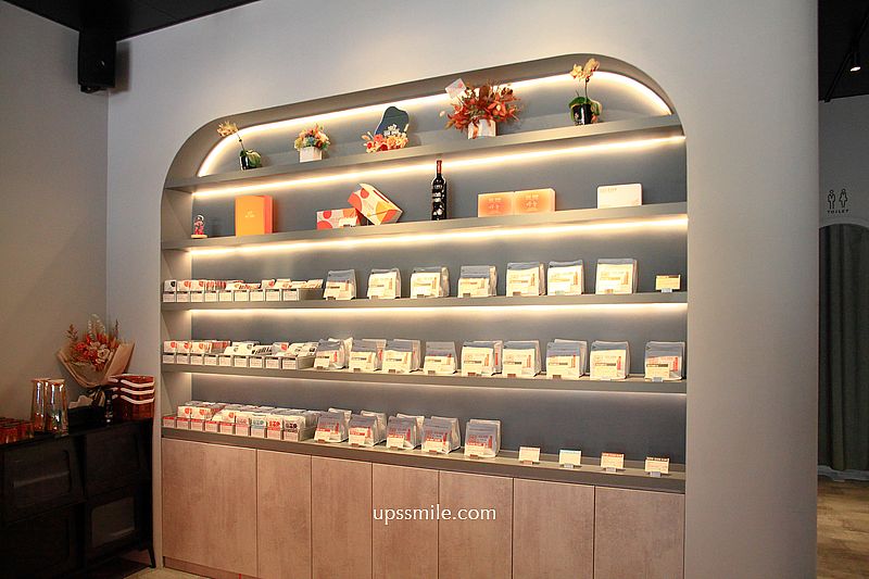 一整個水泥灰牆面,擺放琳瑯滿目,自家烘焙咖啡豆與濾掛包,乾淨明亮,喜歡可購買。
