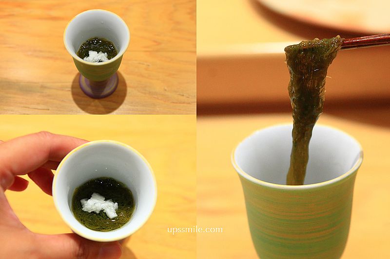 醋物沖繩水雲,用醋處理,宛如如海帶絲樣貌,吃起來滑溜又帶有一點脆度,帶點酸很開胃,不膩口。