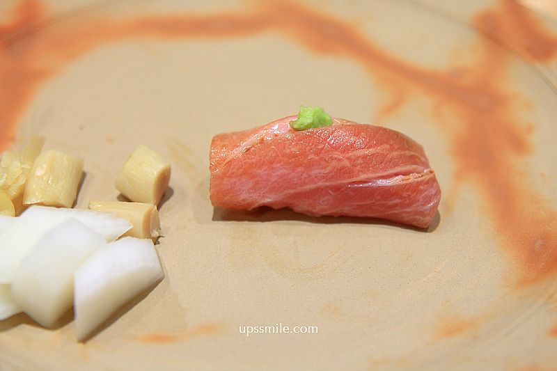 餐盤有薑與醃漬蘿蔔,可先吃小菜,開開胃,這裡的山葵採用日本進口好品質,都是現磨的,好新鮮,沒有惺辣嗆鼻感。