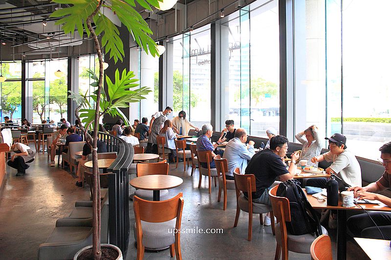 偌大空間,靠窗邊這曲線這區,座位大多都有插座,插座在下方,提供Wi-Fi插電服務,筆電族、附近上班族方便。