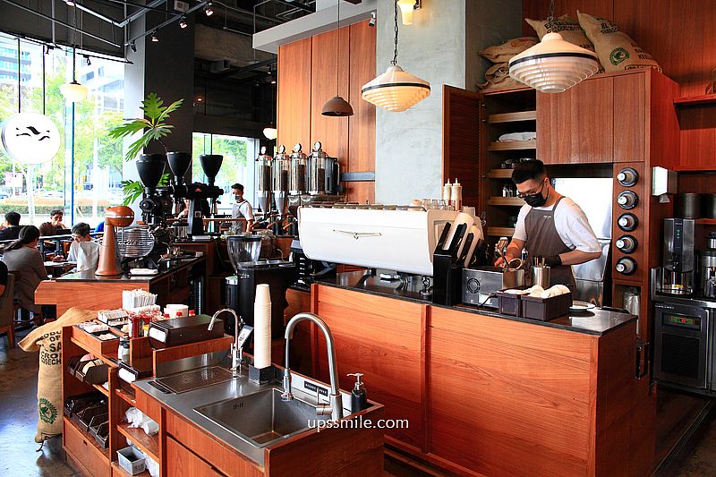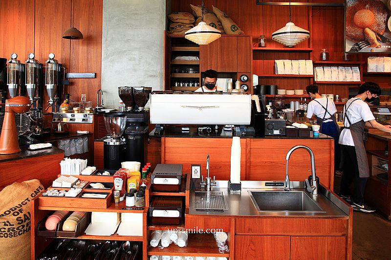 中間規劃開放式咖啡吧台,以及自助式區,餐具紙巾自助式拿取,也有設計一小個洗手台,非常便捷。