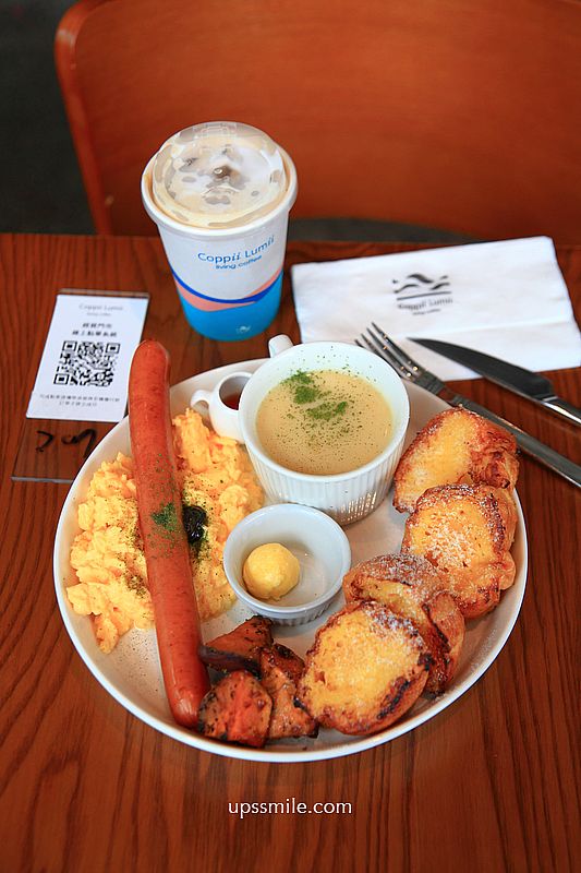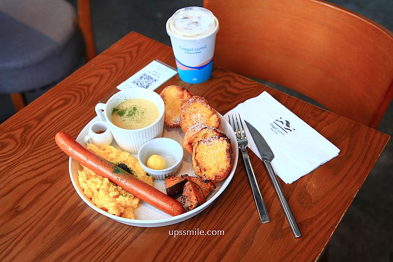 南港美食,南港早午餐咖啡廳,捷運南港軟體園區站美食,開業多年橫掃IG網美打卡台北超人氣早午餐,Coppii Lumii living coffee 冉冉生活經貿位於台北市南港區經貿二路196-1號,南港LaLaport對面美食,挑高寬敞大片窗景,無壓迫感自然木質文青風空間,全日早午餐、手沖咖啡、茶等,提供Wi-Fi插電服務,打造南港不限時咖啡廳推薦,適合三五好友聚會,冉冉生活線上訂位,可惜這門市不給訂位,點了小法國套餐組合348元,補差額換咖啡拿鐵+65元,早午餐盤有暖和濃湯、法國吐司、松露金黃嫩蛋、德腸和地瓜等,令人垂涎美食,南港經貿園區自家烘焙咖啡廳,附Coppii Lumii living coffee冉冉生活經貿菜單。