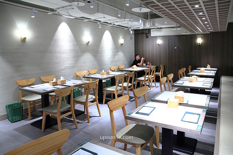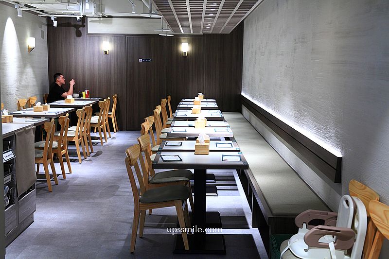 映入眼簾,長條形空間,分成前後兩半部,店面很深,造就附近上班族可大量入內用餐吃飯,前半部日式吧檯座位,後半部規劃兩人與四人座位區,日式氛圍,乾淨明亮衛生空間,暖黃色,很舒適,台北文青風拉麵店風格。