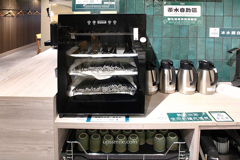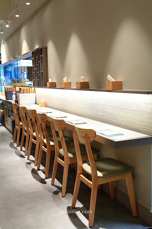 開放式吧台,餐具自助式拿取,玄米茶和水無限享用。