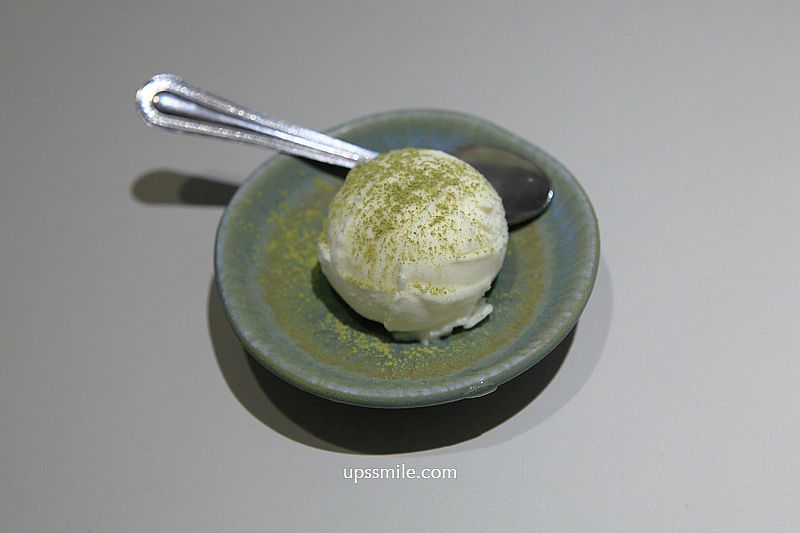 飯後冰淇淋「柚香冰淇淋」,撒上抹茶粉,甜而不膩,冰涼甜香。