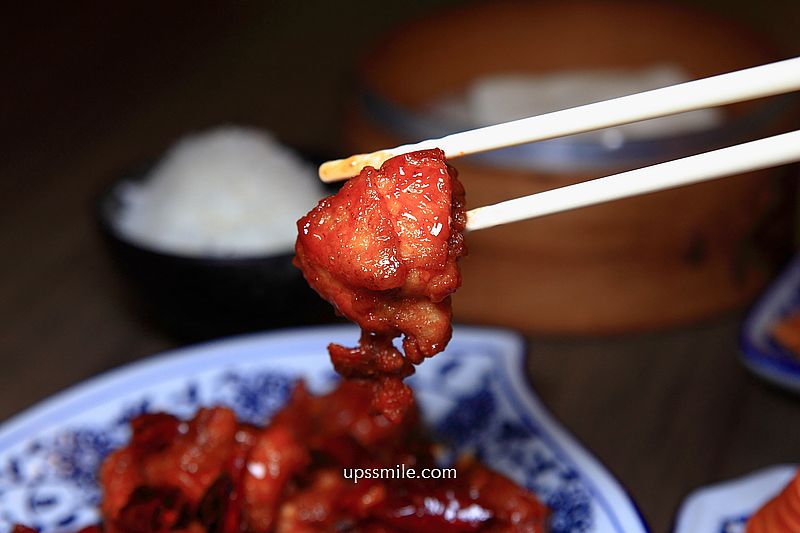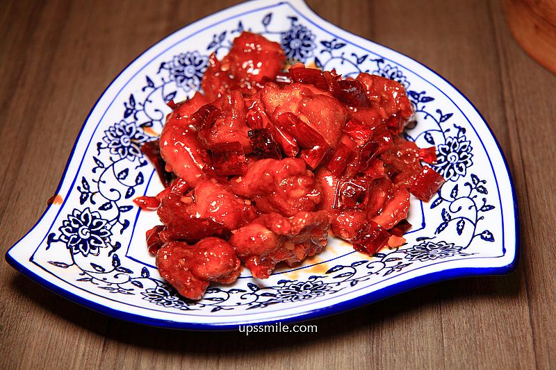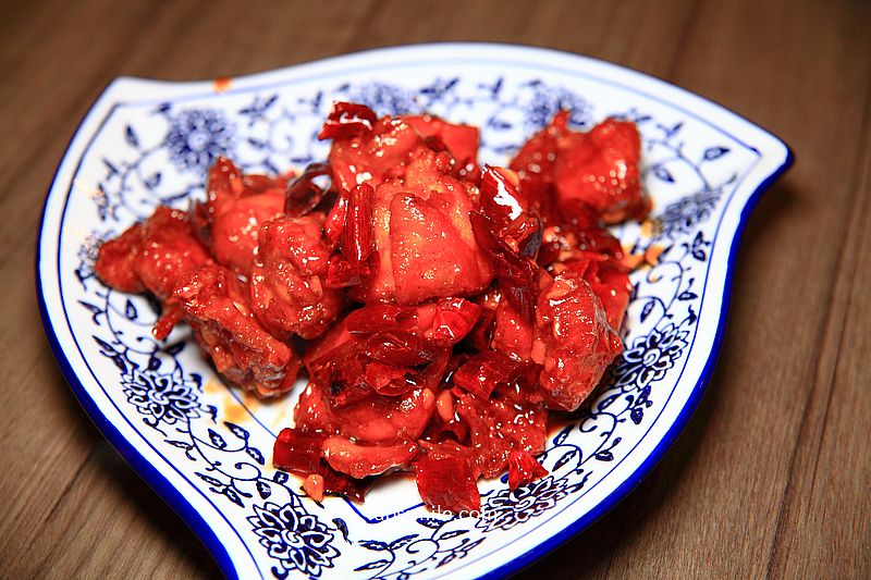 整個火紅色,感覺很有辣度,卻不嗆辣,每一塊雞肉吸附醬汁,可吃到酥脆外皮,多汁鮮嫩雞肉,甜鹹辛辣帶勁,好好吃。