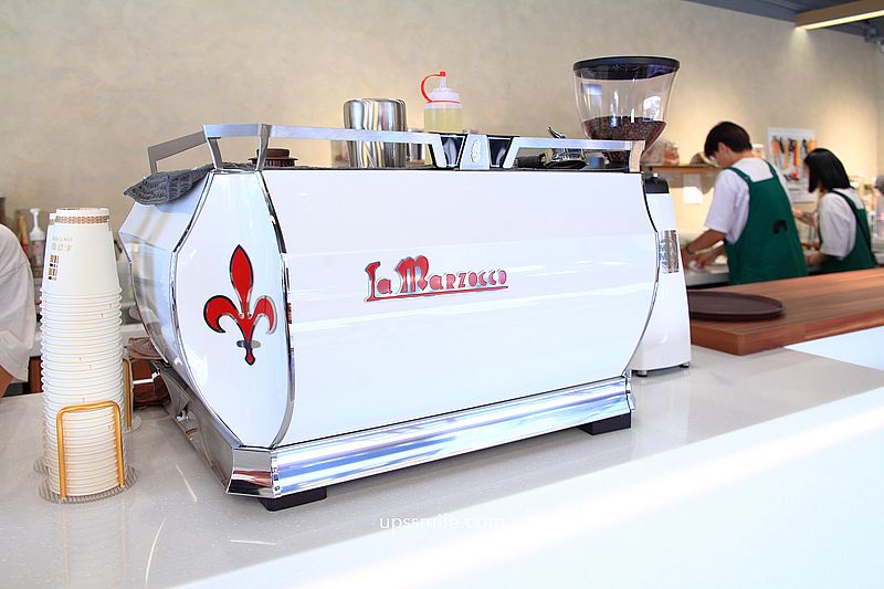 使用白色La Marzocco 咖啡機勞斯萊斯,很美,泡出每杯咖啡。