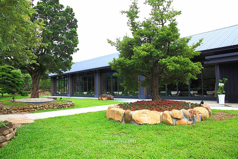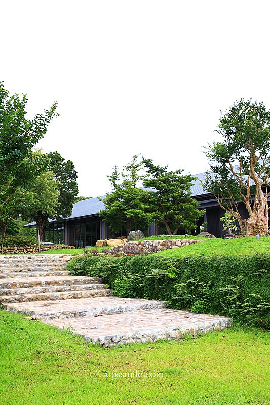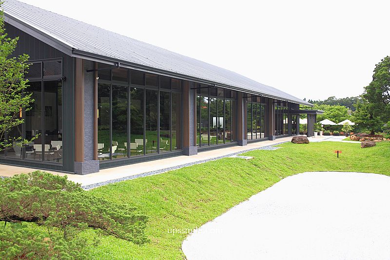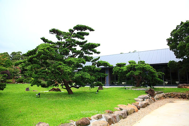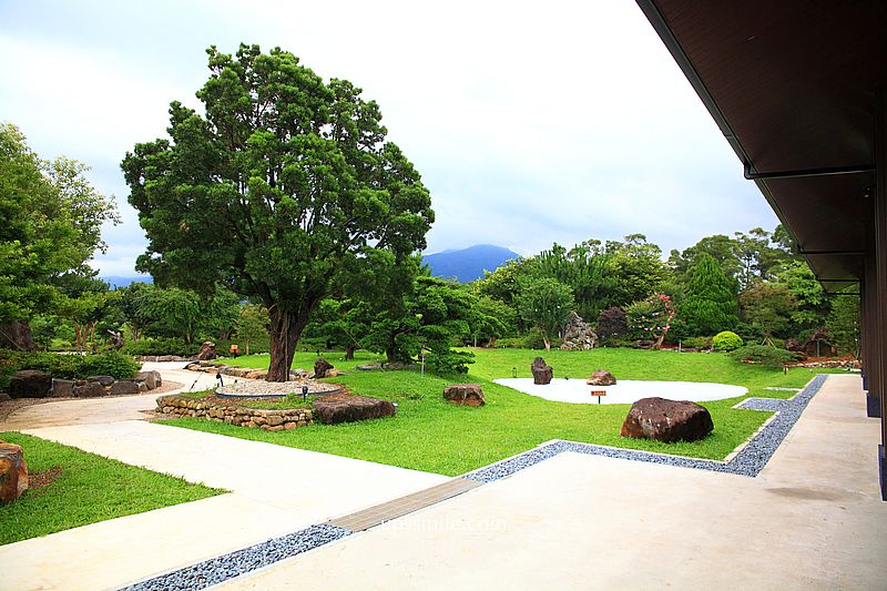 滿滿綠意,日式庭院造景與小徑,完全與建築融合一體,不管從哪條路前往入園內,會與這棟建築交集。