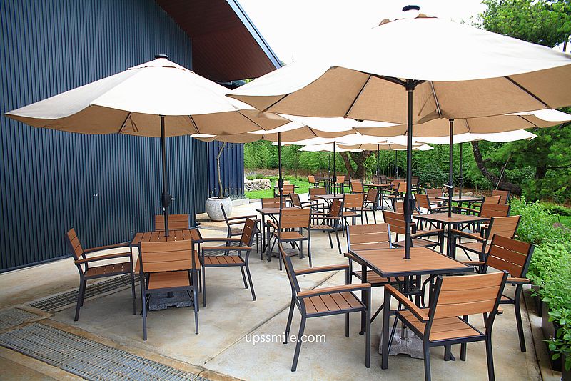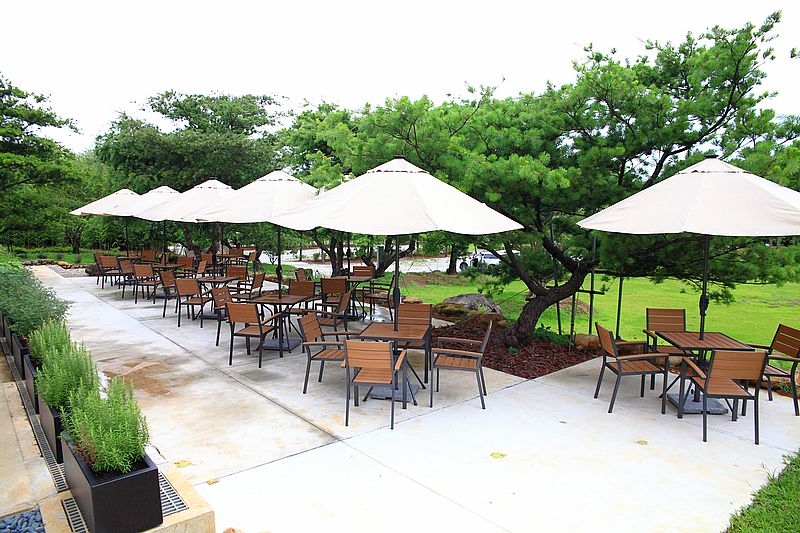 若天氣不熱或沒下雨,戶外露天陽傘庭院座位,視野很棒,滿滿綠意盎然庭院收入眼前。