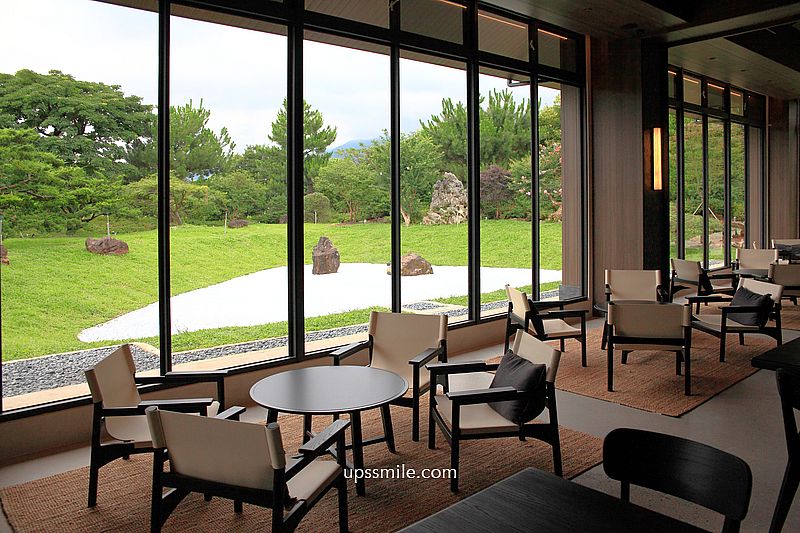 大片窗景,戶外日式庭院造景,宛如到訪日本,感受縮小版的台版兼六園日式庭院風景。