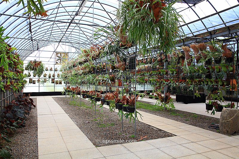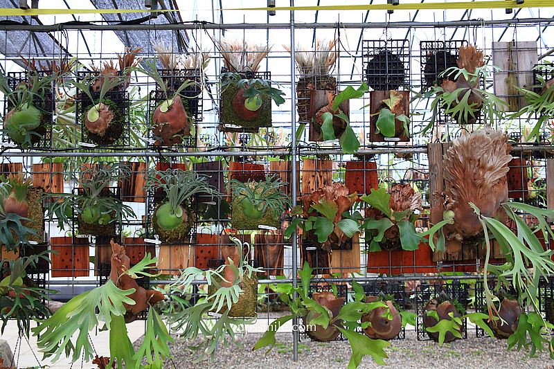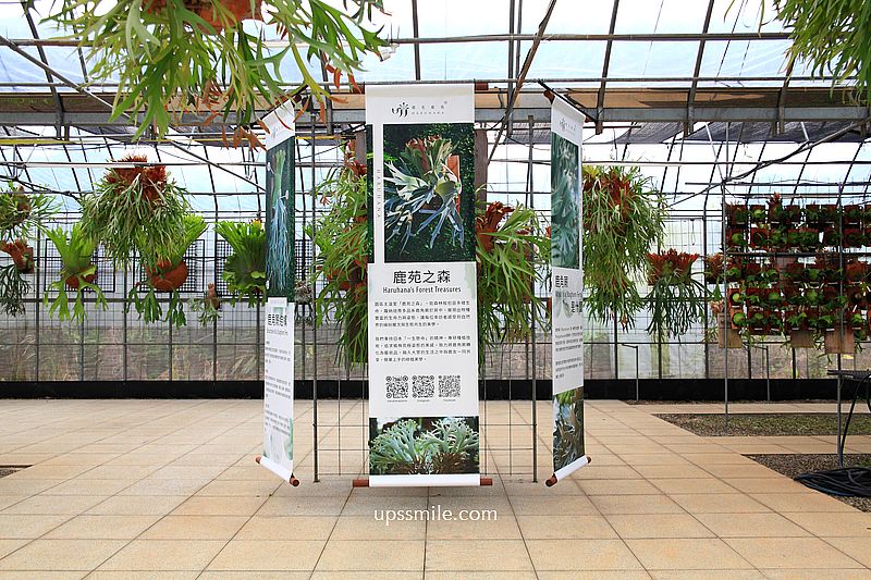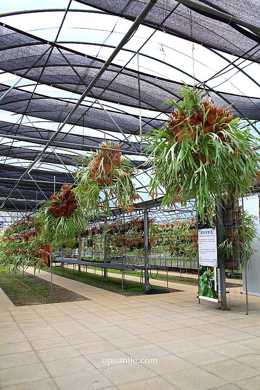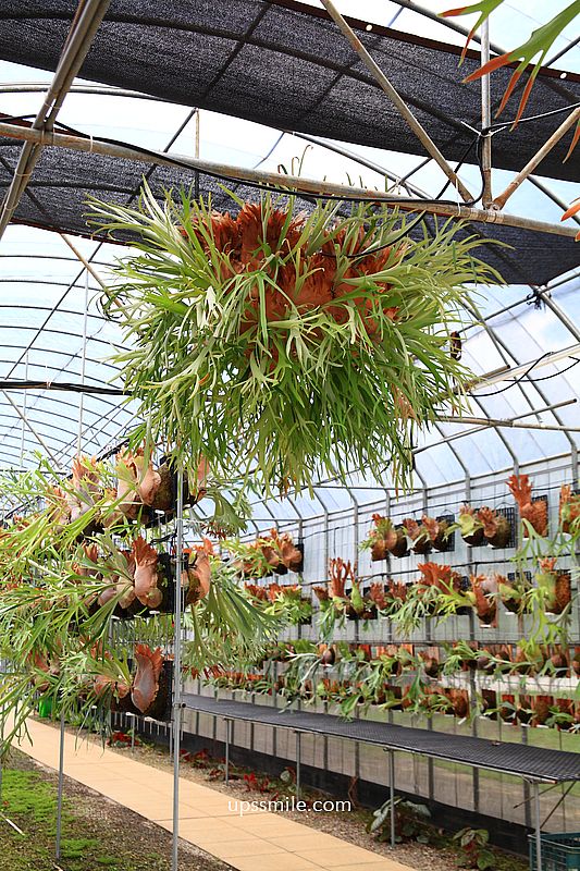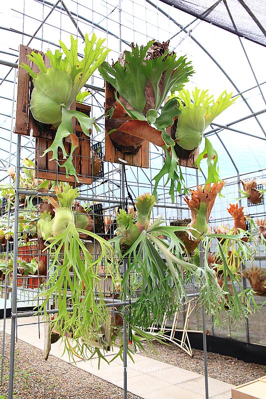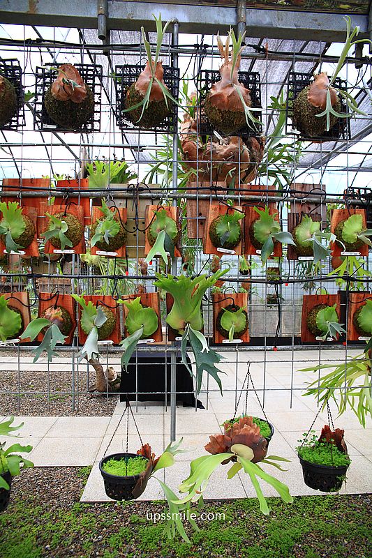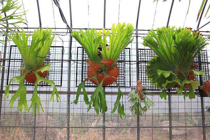 溫室內展示琳瑯滿目特色鹿角蕨,鹿角蕨有單芽型和多芽型的品種,單芽型如「巨獸」、「何其美」、「女王」等鹿角蕨不會長側芽,只能靠孢子繁殖;多芽型則是母株的根系會長出側芽,將側芽從「媽媽」旁邊移植出去後,便可以培育出和母株相似度很高的「小孩」。(此段文轉載自此篇出處連結)