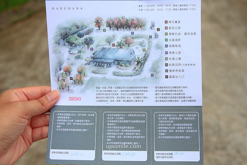 入園會給這張紙,蓋上日期,整反面,圖文並茂,園區介紹,光看整個空間很寬敞,不過主要以一棟日式黑色建築為主,以及後方鹿角蕨溫室空間。