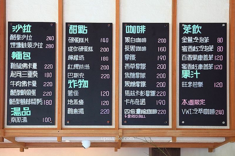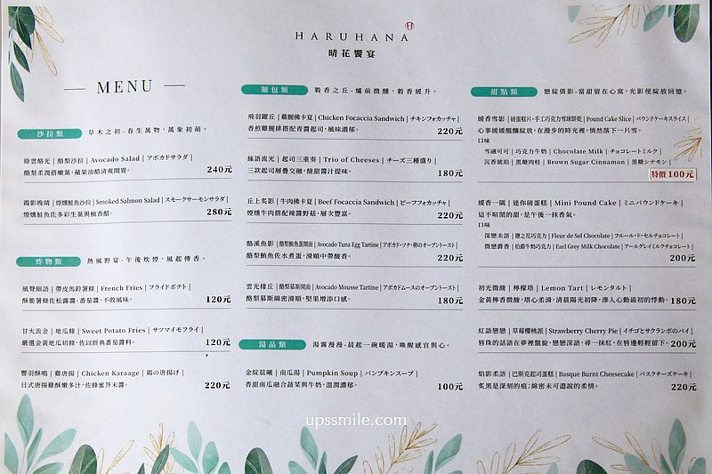 晴花鹿苑菜單,門票可折抵100元,提供沙拉、炸物、甜點、咖啡、茶等。