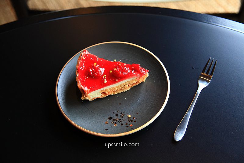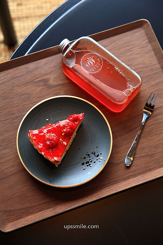 木盤擺放,端好上桌,這天點了紅櫻桃塔派200元、蜜香紅茶冷泡80元。