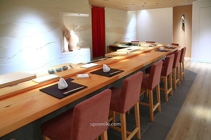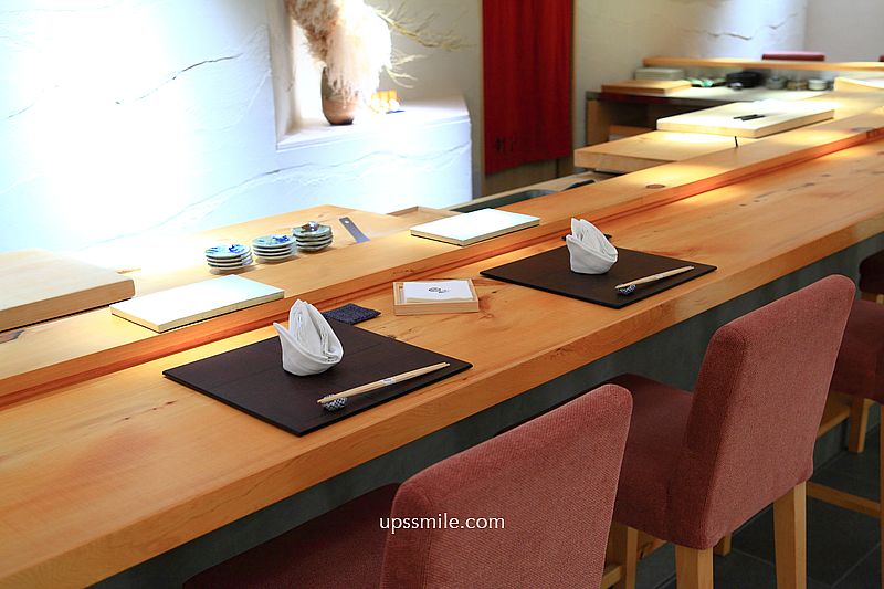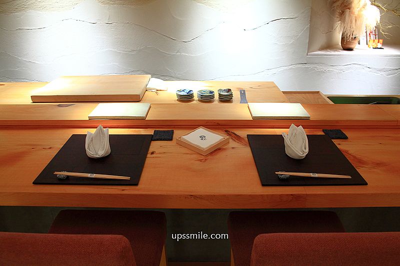 全室使用天然實木打造吧台,散發淡淡檜木香,每一位置,餐前擺盤,日式呈現,備感用心,讓人期待。