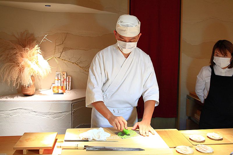 近距離可見日料師傅,精緻廚藝,透露出過往的累積功夫,製作料理過程,宛如一場五感視覺饗宴。