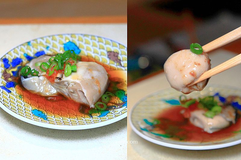 兵庫縣生蠔,整個體型巨大,肉質鮮嫩且沒腥味,愛吃生蠔老饕最愛,這產區的生蠔很脆口,搭配辣蘿蔔泥與水果醋,好清爽,擠上幾滴檸檬汁搭配凸顯生蠔本身甜味,炎炎夏日吃上一口,好開胃。