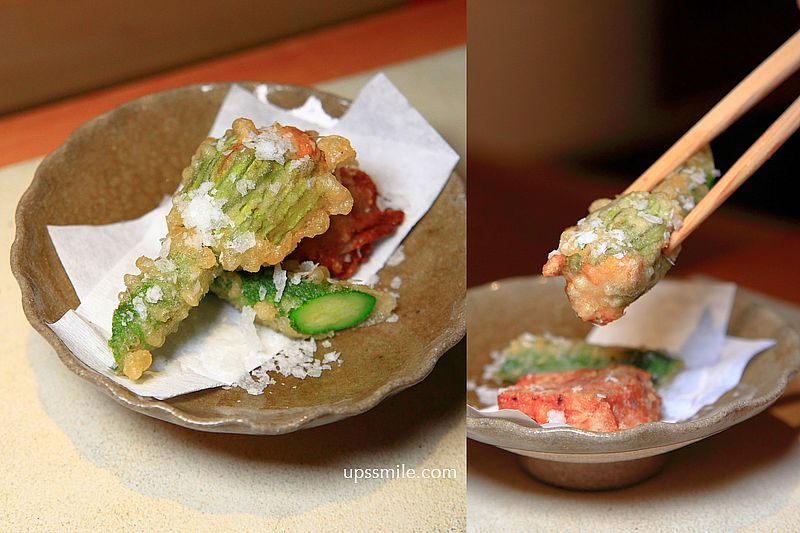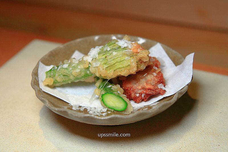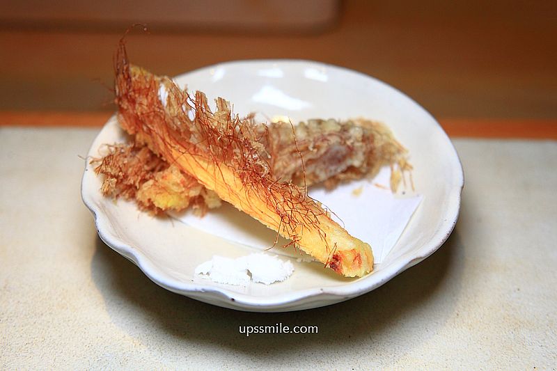 玉米筍天婦羅,搭配雪鹽,炸物料理,看似普通的炸物,金黃酥脆,一點油膩感都沒有,脆口開胃,用炸物來進行另一階段料理。