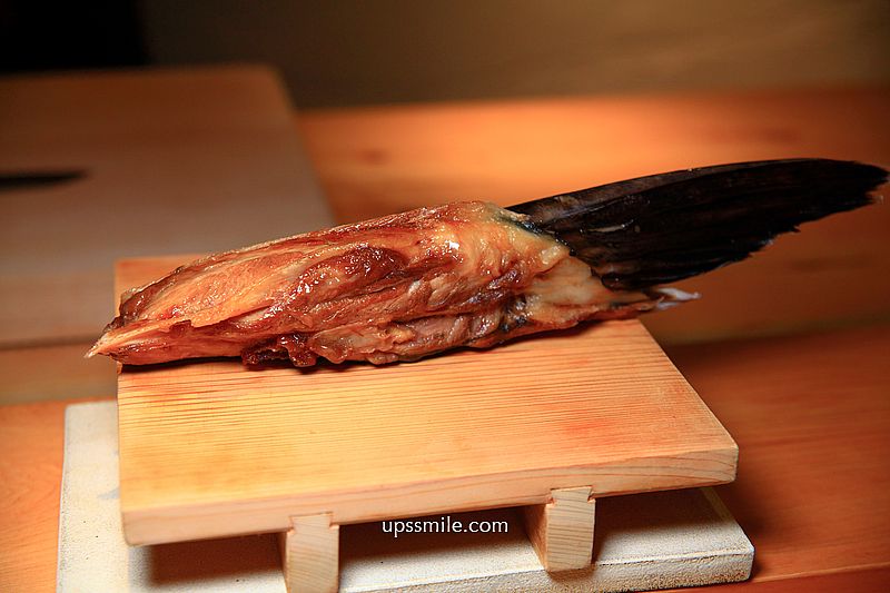 鮪魚胸鰭,烤好上桌,先讓你開開眼界,之後要去製作成黑鮪胸鮨丼飯鮭魚卵。