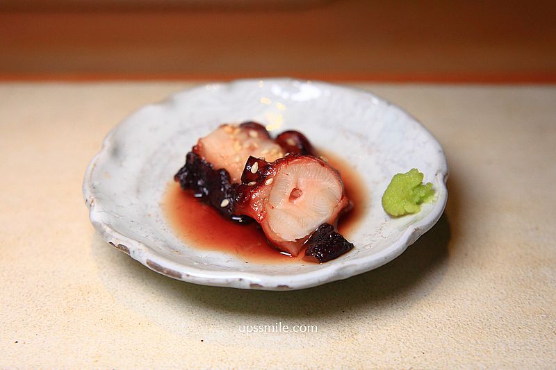 章魚櫻煮,很夢幻的名字,光想做法就知道很費工,將章魚用馬殺雞處理,再用蘿蔔捶打使之口感鬆軟,加了紅豆的高湯熬煮40分鐘,呈現出櫻花色,作為湯底,滿滿紅豆香氣,紅豆本身很補氣,吃下一口章魚,鬆軟柔嫩。