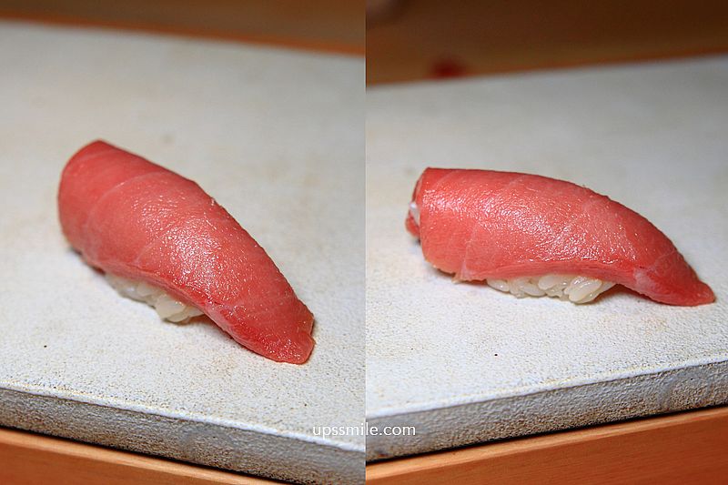 鮪魚大腹,是鮪魚肚的最肚子魚肉,帶點筋部位,且比鮪魚中腹更顯得粗且明顯紋路,吃起來充滿油脂,很有膠原蛋白感,好豐富,喜歡油花多的魚肉部位,吃這塊最好了。