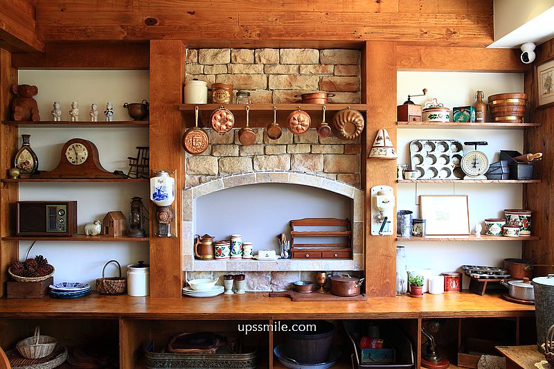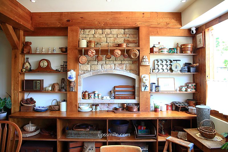 這面牆鄉村風造景廚房與壁爐等造景,木質色系,歐風磁磚,溫潤色系,非常有質感,網美們好愛這裡拍照。
