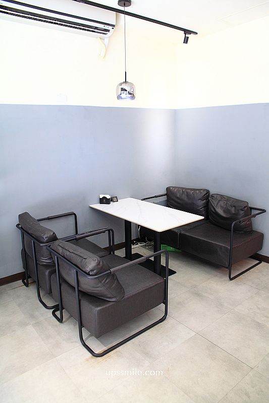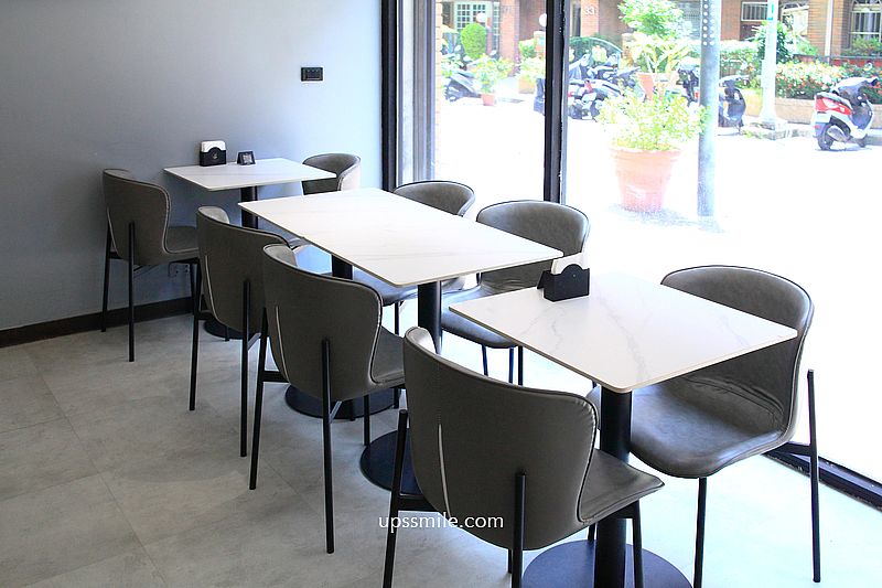 映入眼簾,小巧空間,可容納20人座位空間,現代簡約裝潢氛圍,黑白色系,充滿摩登設計質感,座位分成兩人、四人座位區與高腳椅座位,適合姊妹淘聚會,這裡也是桃園寵物友善餐廳,需牽繩,寵物袋,店內還有隻可愛店狗。