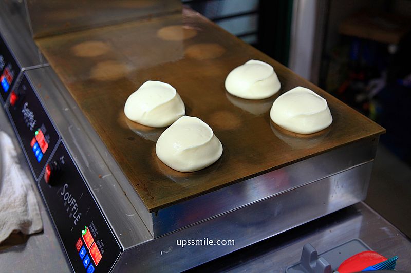 光看這製作舒芙蕾過程,打發好的舒芙蕾立刻放到鐵板上煎烤,每個舒芙蕾都很飽滿大個,帶有厚度且完美不塌陷的日式厚舒芙蕾鬆餅,好療癒,現點現做,聞到陣陣自然奶香,好誘人。