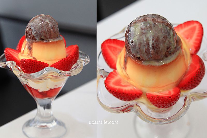 草莓使用進口草莓,品質顧好顧滿,草莓香氣十足,酸甜風味,布丁走非常扎實的口感,滿滿蛋香,上頭一球巧克力冰淇淋,巧克力的苦甘,伴隨甜感,下方還有舒芙蕾蛋糕體,草莓醬,每口都是濃郁的蛋糕體,整杯吃完很飽足感。