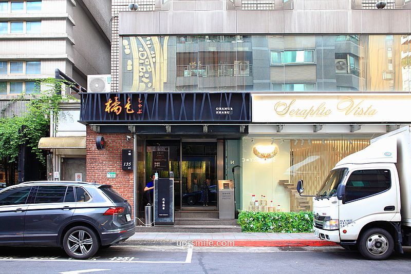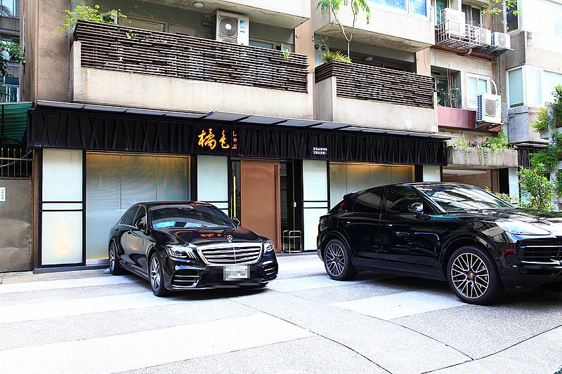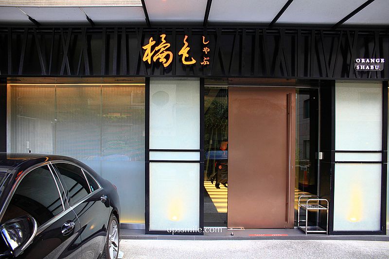 橘色涮涮屋二館,門口前方可停車,停了很多高檔名車, 一字排開,很壯觀,門外的黑色反光玻璃,完全無法窺探店內一景,造就政商名流、藝人名媛很愛朝聖台北高檔火鍋餐廳,包含天王周杰倫都造訪吃好幾次。