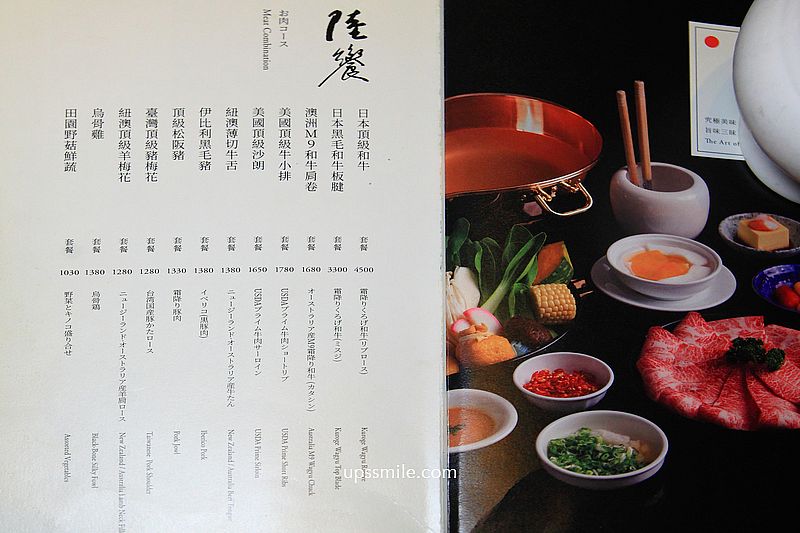 橘色涮涮屋二館菜單、橘色涮涮屋菜單,橘色涮涮屋價格,提供單點或套餐,橘色涮涮屋怎麼點,主要以套餐為主,您可選擇陸饗(肉類套餐)或海饗(海鮮套餐)。 套餐包含開胃菜、菜盤、主餐、附餐(粥、越光米或麵)、水果和甜點。 您可以依據個人喜好和食量,選擇適合套餐份量,可額外單點喜歡食材,從日本黑毛和牛、頂級小牛排、各式活海鮮、手工杏仁豆腐…等,平均每人約1000多元,會收10%服務費。