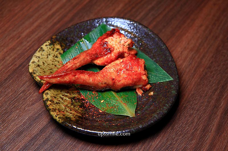 招待手羽先,每次招待品項不同,手羽先就是烤雞翅,油亮外觀,烤物,帶有日式烤醬鹹香風味,有水準,好美味。