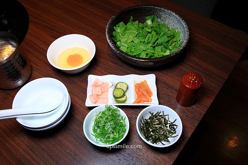 飯後精華,每來必吃,煮粥,搭配粥品的配料,一併上桌,有青蔥、海苔、蛋、醃漬物。