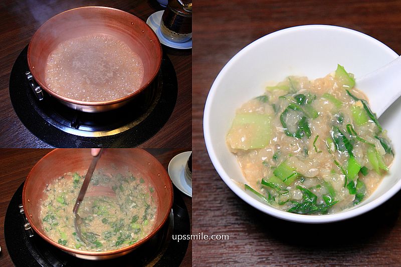 最後的精華,粥品,簡稱黃金粥,前面菜盤的青花菜沒吃完,服務人員很貼心,切成一小段,放入粥品煮,煮完食材湯汁當湯底,加入米飯熬粥,湯底精華,粥鹹香入味,吸收海鮮與肉、蔬菜湯汁都鎖在粥內,三重奏組合,好好吃。