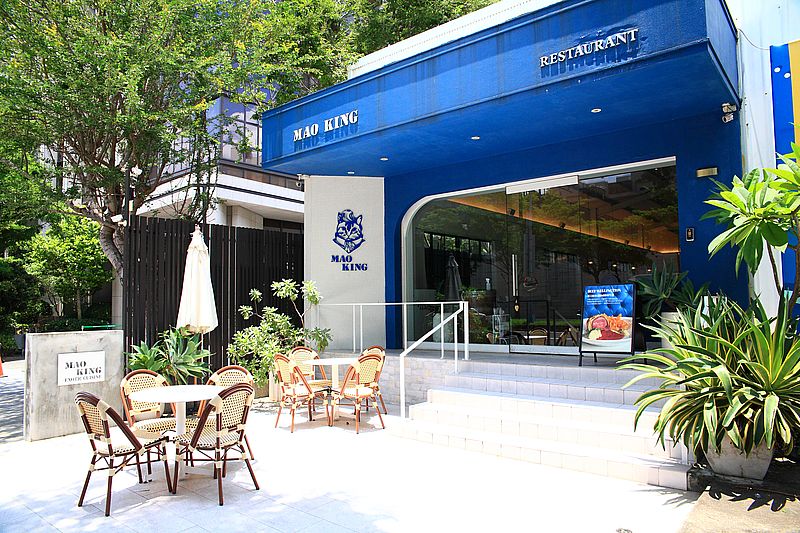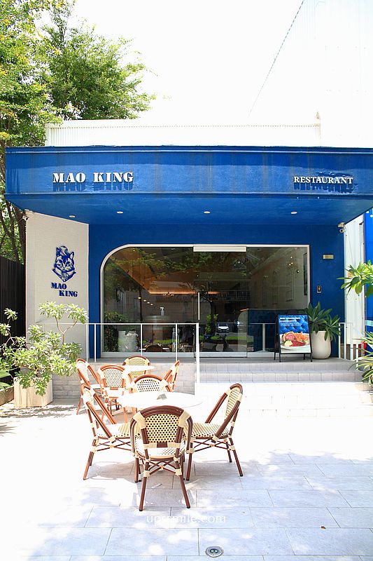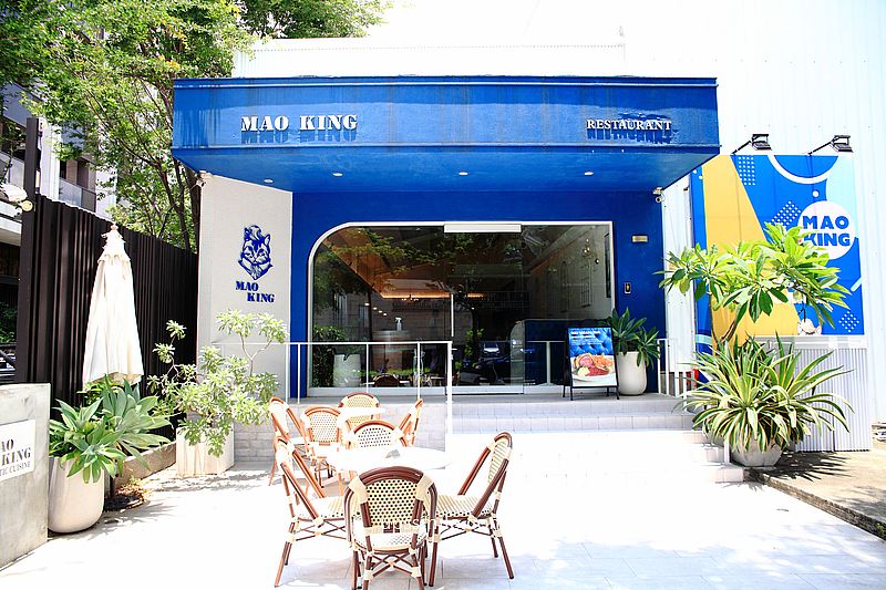 Mao king貓王經典 Restaurant南屯龍富店位於台中市南屯區龍富路四段上,車水馬龍位置,周邊台中南屯區美食林立,獨棟邊間鐵皮屋建築,地中海藍色與純白系,現代感加入度假風,偽出國景點,門口擺放幾張竹編藤椅,很唯美,讓人想一探究竟。