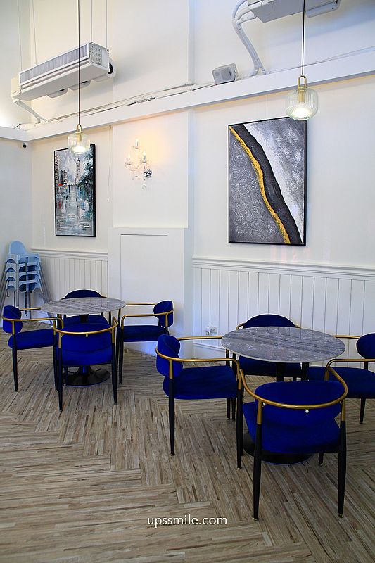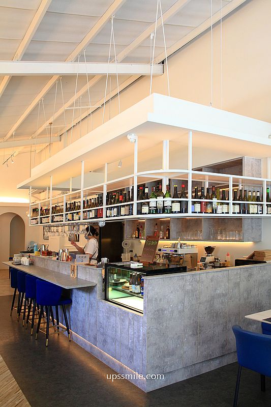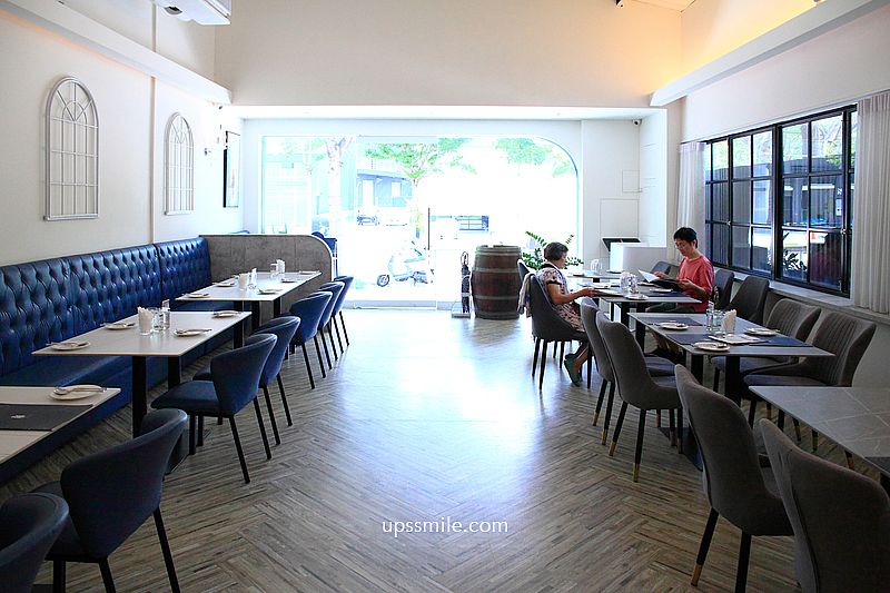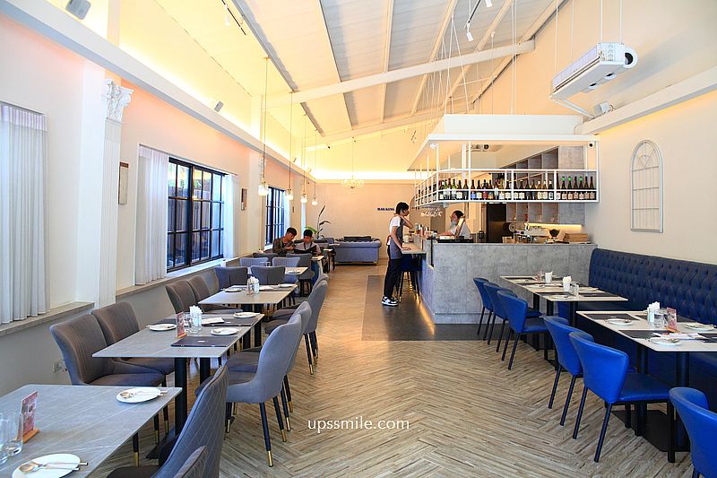 半開放式、皮革藍色古典歐式沙發,好乘坐,舒適用餐空間,不僅提供台中早午餐,夜晚搖身一變,還是一間台中餐酒館。
