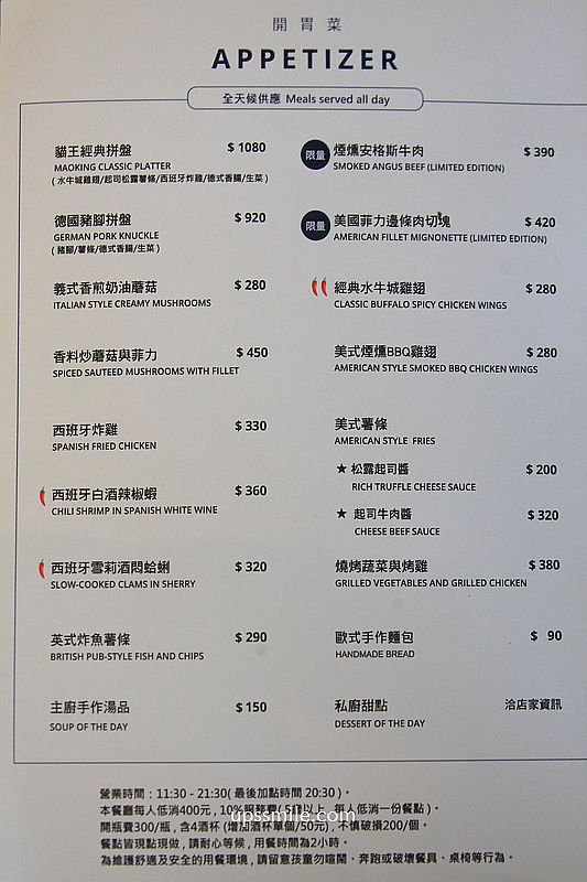 Mao king貓王經典Restaurant南屯龍富店菜單