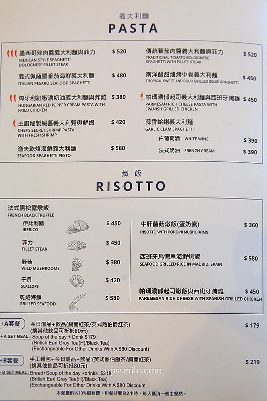 貓王經典龍富店菜單、貓王經典菜單,低消每人400元,會收10%服務費,餐點全天候供應,滿足早午餐迷的需求,提供咖啡、茶、甜點、ˋ大義大利麵、燉飯、早餐盤等,多種料理可選擇,這裡上餐速度有點慢,現點現做,需耐心等候,趕時間的老饕,可能得考慮下餐點上菜時間,餐點是單點方式,可升級+A套餐 跟+B套餐組合。