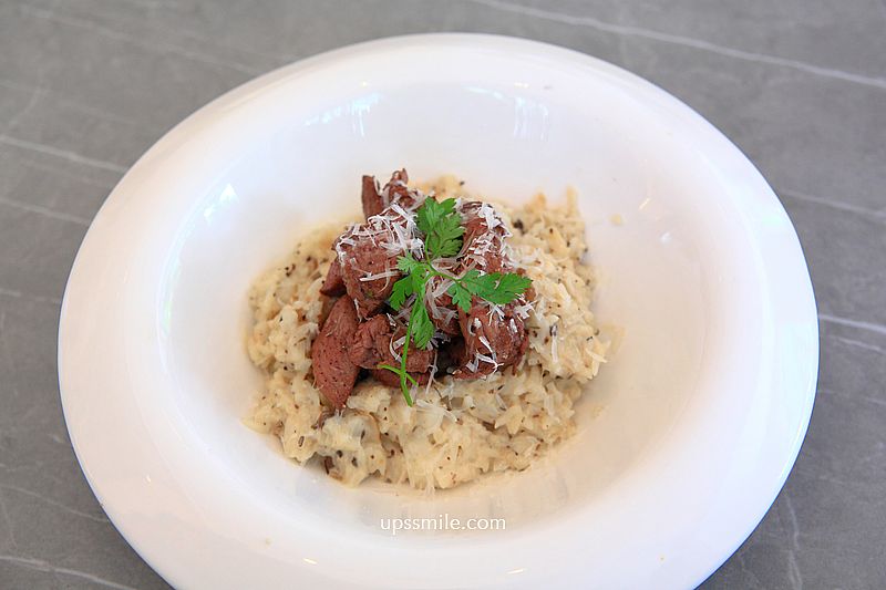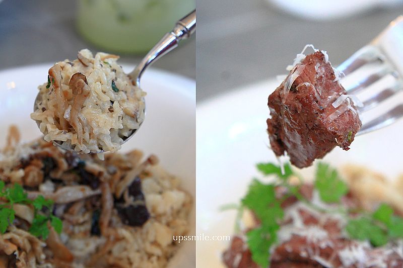 菲力肉質大塊,料理軟嫩不柴,彈牙有口感,燉飯會帶點米芯口感,吸附湯汁,滿滿奶香,燉飯入口綿密,每一口都極具奢華感。