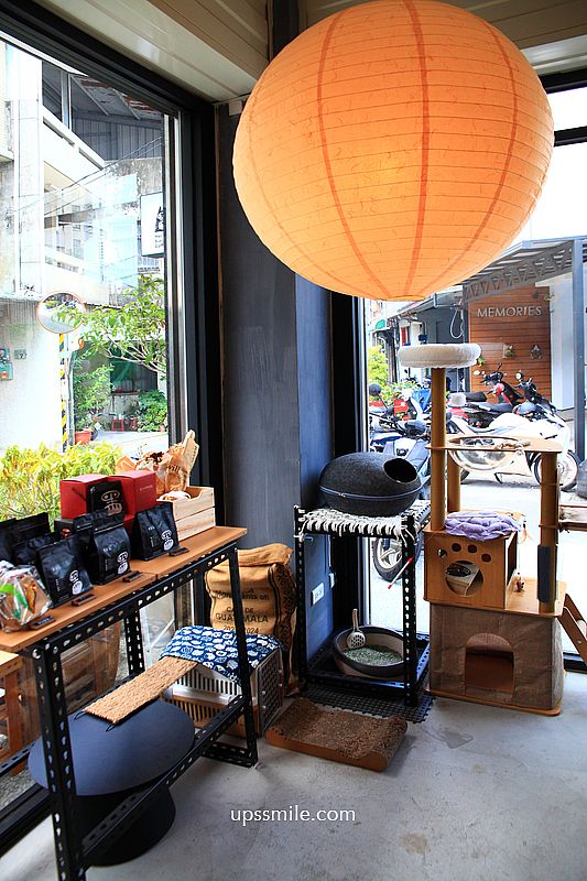 推開門入內,高掛的日式圓紙燈籠,暖黃色系,水泥灰地板,黑色主色系,全來自店主理人巧思,一手包辦店內所有裝潢,角落可見貓咪等貓砂,可想見店有養貓,也是台中寵物友善咖啡廳。