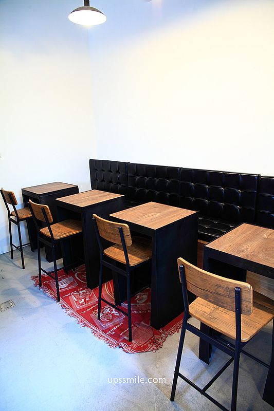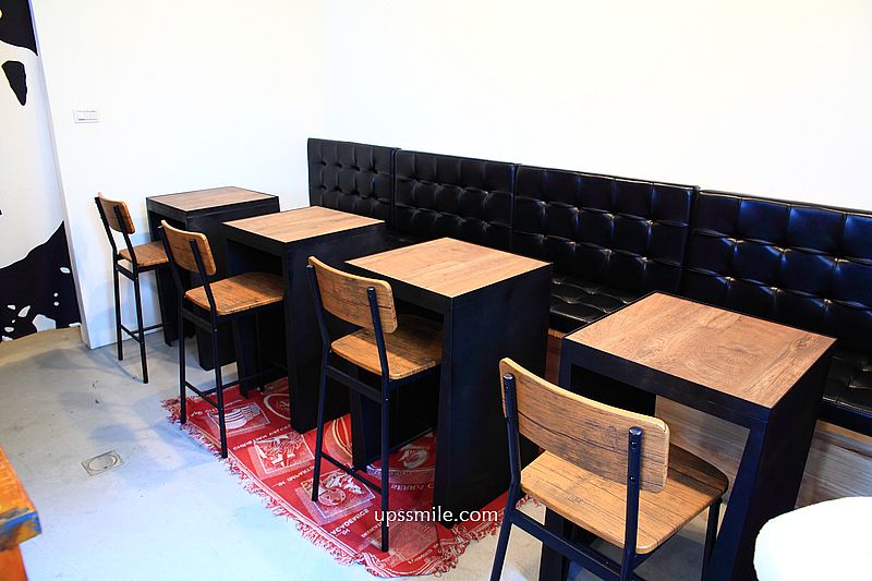 後方規劃一排四人雙人座位,高腳椅木質座位,木質溫潤,少了冰冷感,可在店內喝杯咖啡。
