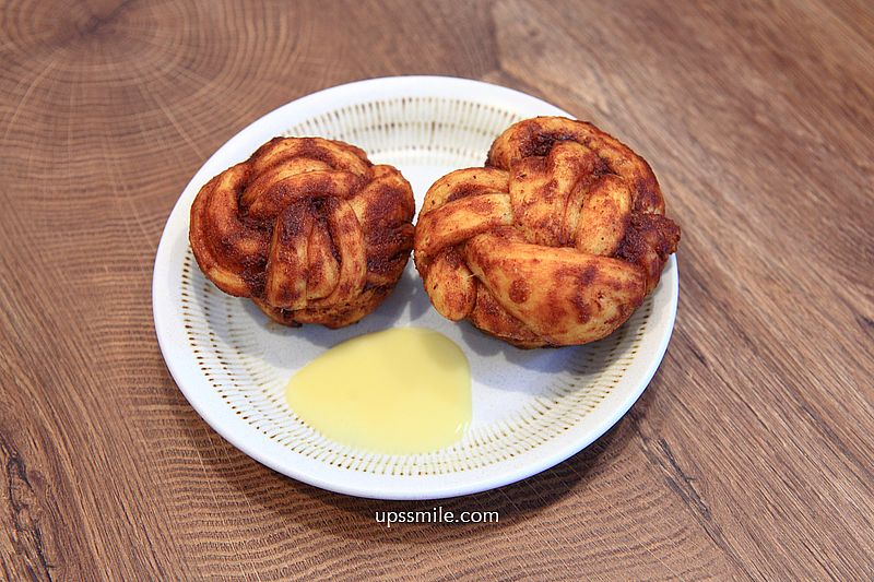 肉桂捲120元,造型可愛獨特,充滿巧思,搭配檸檬優格醬在一旁,可搭配食用,增添豐富層次,肉桂捲烤過後,呈現酥脆麵包體,咀嚼有口感,滿滿肉桂香氣,使用中藥店的肉桂粉磨製,天然肉桂香,很濃郁香醇肉桂味,與外頭販售包裝的肉桂粉不同,令人口齒留香,難得吃到好吃的肉桂捲。