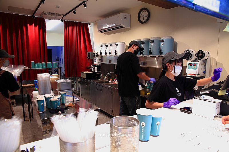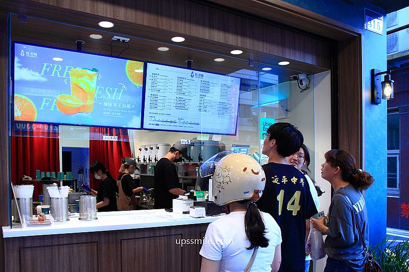 邊間位置,低調質感藍色主色系,每到下午茶時光,可見人潮排隊,購買手搖飲料。