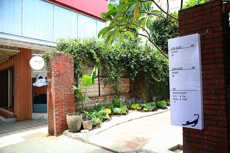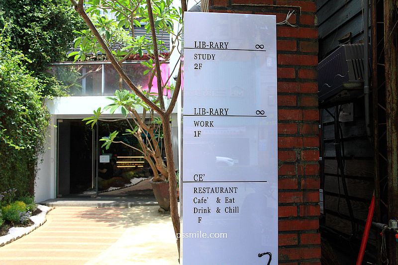 小小可愛白色線條招牌,光看門口入口處,很難想像這裡竟然隱藏一間近兩百坪圖書館咖啡廳,也是士林共享咖啡廳。