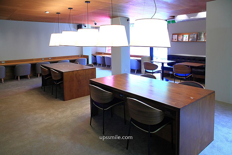 特別用玻璃門區分另一讀書與閱讀空間,裡頭規劃一人150元可享用整天,附贈一杯美式飲品無限暢飲喝到飽,分成兩區空間,裡頭與外頭,人都可互看,畢竟是大片落地窗,採光通透感好,很明亮,少了陰暗感。